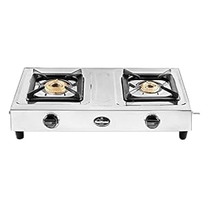 Original price was: ₹2395.₹1942Current price is: ₹1942.gas stove type: manual; burner material: brass; size of the burner: 1 big, 1 small; material of the body: stainless steel; material of the top: -; colour: silver;warranty: 2 years; covered in warranty: manufacturing defect