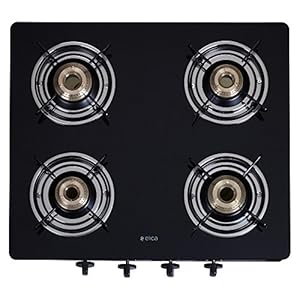 easy to clean spill tray;68 percent plus thermal efficiencyElica Vetro Glass Top 4 Burner Auto Ignition Gas Stove (594 CT VETRO AI S)