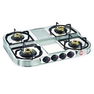 Efficient Burners – Equipped with Efficient and long lasting Tri-Pin Brass Burners that ensure proper heat distribution during cooking. It consumes less gas and cooks food faster. It has Brass Valves.