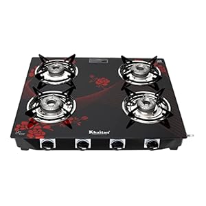 PAN SUPPORTS – Its heavy Pan Supports provide greater stability to the utensils on the burner and allows to place large utensils conveniently. Gas Inlet is on Right Side of the Stove.Khaitan 4 Burner Active Forge Red Toughened Glass LPG Gas Cooktop, Manual Ignition Gas Stove with 1 Year Warranty (ISI Approved)