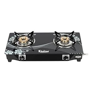 Bakelite knobs – This Manually Operated Gas Stove Comes with Smoothly Operated, Ergonomically Designed, Heat Resistant Bakelite knobs.Khaitan 2 Burner BP-Nano Green Digital Toughened Glass LP Gas Cooktop, Manual Ignition Gas Stove with 1 Year Warranty (ISI Approved)
