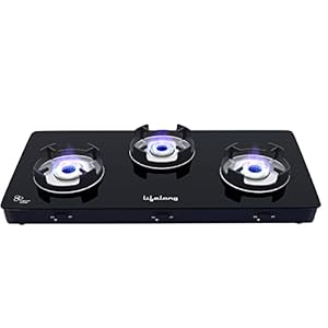 Lifelong LLGS902 Automatic Ignition Glass Top Gas stove 1 Burner comes with smoothly operated Knob | Gas inlet nozzle on the right side | Anti-slip legs | Heavy Duty Pan SupportLifelong LLGS803 Auto Ignition, High Efficiency 3 Burner Gas Stove with Toughened Glass Top, ISI Certified, Automatic Ignition, For LPG Use Only (Black)