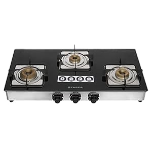 Gas Stove is ISI approved , Tri pin gas burners: 2 High Efficiency BurnersFaber Gas Stove 3 Burner Glass Cooktop (Cooktop Supreme Plus C 3BB) Manual Ignition, Black