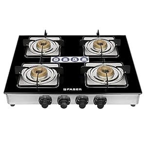 Ignition: Manual, Material : Glass type, Frame: Black Finish; Control: Feather touch knobsFaber high efficiency 4 Brass Burner gas stove, ISI Certified gas stove, with Jumbo Burner, Manual Ignition,double drip tray (COOKTOP JUMBO NEO XL 4BB) 5 year warranty on burners, Black