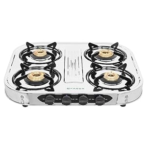Ignition: Manual || Pan Support: Euro Coated || Tray: SS drip trayFaber high efficiency 4 Brass Burner gas stove|| Stainless Steel|| ISI Certified gas stove, Manual Ignition, (COOKTOP CRYSTAL 4BB SS) 2 year comprehensive warranty