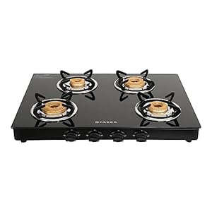 Nylon knobs with heat resistance,Anti-Skid Feet for easy operationsFaber high efficiency 4 Brass Burner gas stove, ISI Certified gas stove, Manual Ignition,double drip tray with Jumbo Burner (COOKTOP JUMBO NEO XL 4BB AI) 5 year warranty on Burners & Valve, Black