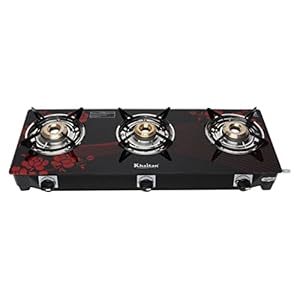 Bakelite knobs – This Manually Operated Gas Stove Comes with Smoothly Operated, Ergonomically Designed, Heat Resistant Bakelite knobs.Khaitan 3 Burner BP-Jio Red Digital Toughened Glass LPG Gas Cooktop, Manual Ignition Gas Stove with 1 Year Warranty (ISI Approved)