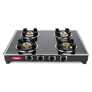 Metal knobs – This Manually Operated Gas Stove Comes with Smoothly Operated, Metal Knobs, Heat Resistant Metal knobs.Khaitan 4 Burner Royal MS Black Toughened Glass LPG Gas Cooktop, Manual Ignition Gas Stove with 1 Year Warranty (ISI Approved)