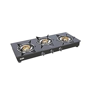 - Glen 1033 GT XL BB BL Stainless Steel, LPG Glass Gas Stove with High Flame Brass 3 Burner (Black, Manual Ignition)Original price was: ₹9995.₹4873Current price is: ₹4873.- Equipped with 3 Different Fuel Efficient brass burners: 1 High flame, 1 Big & 1 Small Burner for diverse cooking requirements. This is a manual operated gas stove certified by BIS for total safety