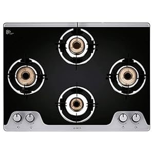 Revolving Inlet Nozzle || Ergonomic black knobsElica Slimmest 4 Burner Gas Stove with Double Drip Tray and Forged Brass Burners (694 CT VETRO 2J (TKN CROWN DT MI)), Manual Ignition