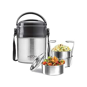 MILTON Steel On 3 Tier Insulated Tiffin Box, 380 ml, Silver