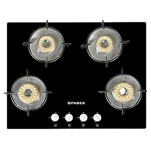 Ignition: Manual || Pan Support: Round, Power coating || Valve: Indian|| Tray: SS double drip trayFaber Glass Top 4 Burner Gas Stove with Jumbo Burner, Glass Mirror Border, Diamond Coated Crown Pan Support (HOB COOKTOP Quick Silver 4BB SS AI) Auto Ignition, Black