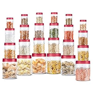 Perfect for kitchen organizationMilton Vitro Plastic Pet Storage Jar and Container, Set of 24 (6 pcs x 300 ml Each, 6 pcs x 700 ml Each, 6 pcs x 1.4 Ltrs Each, 6 pcs x 2 Ltrs Each), Red Wine | Air Tight |Kitchen Organiser | BPA Free