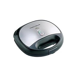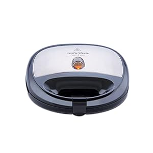Attachment and Tools – Spindle, Spindle extension, Kneading blade holder, Unique 2-in-1 pusher, bowl lid, citrus juicer, centrifugal juicer and lid, processing bowl, liquidising jar, grinding jar, chutney jar, spatula;Warranty: 2 years on productMorphy Richards SM3006 750-Watt Sandwich Maker (Silver and Black)
