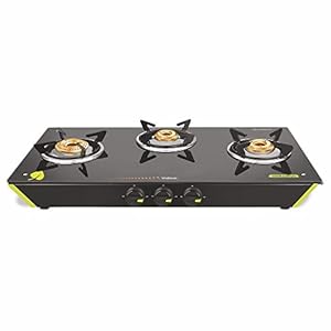 Colour: BlackGlen 1033 GT XL BB BL Stainless Steel, LPG Glass Gas Stove with High Flame Brass 3 Burner (Black, Manual Ignition)