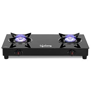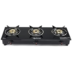 Lifelong LLGS902 Automatic Ignition Glass Top Gas stove 1 Burner comes with smoothly operated Knob | Gas inlet nozzle on the right side | Anti-slip legs | Heavy Duty Pan SupportLifelong LLGS803 Auto Ignition, High Efficiency 3 Burner Gas Stove with Toughened Glass Top, ISI Certified, Automatic Ignition, For LPG Use Only (Black)