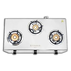 Square Enameled Grid – The Grid can steadily hold pans or pots of various sizes for consistent cooking.Faber high efficiency 3 Brass Burner with stainless steel top, ISI Certified gas stove, Manual Ignition, For LPG use only (Cooktop Hilux Max 3BB SS) 5 years warranty on Burners & valvue