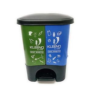Cello Dry and Wet Dustbin | Cello Duo Plastic Wet and Dry Waste Step-On Pedal Dustbin (20 litres, Black, Green and Blue)