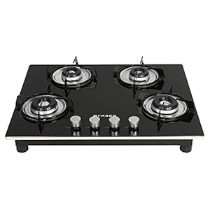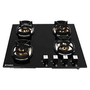Pan Support: Cast Iron FinishFaber Glass, Mild Steel 4 Brass Burner Hob Open Cooktop Hybrids in Built Auto Electric Ignition (Black)