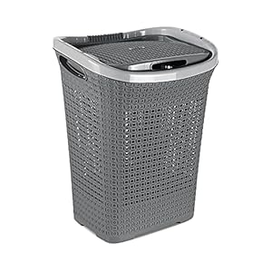 Size: 39.200000000000003 cm x 39.200000000000003 cm x 31.7 cmMilton Pluto Laundry Basket With Lid, 50 Litres, Grey | For Bedroom | Bathroom | Laundry Room | Office | Clothes | Toys | Books | Magazine | Accessories | Portable | Easy to Carry