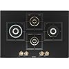Glass gas hob,Sword Knobs,Auto Ignition,Tempered glass,Stainless steel heat Shields,Flame Failure Safety device ( FFSD),Enameled pan supports,Sword Knobs