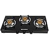 Faber Gas stove 3 Burner Glass Cooktop (Jumbo 3BB SS) Manual Ignition, Steel Frame Body, Black