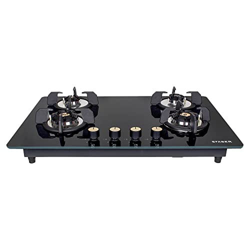 Faber Hob/Hobtop 4 Brass Burner Auto Electric Ignition Glass Top (Maxus HT784 CRS BR CI AI) Black, Glass and Mild Steel