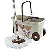 Super clean spin mop has a bucket cleaning system that works great for dry and wet cleaning first use dry mop to select up hair, lint and dusts then use damp mop for thorough cleaning convenient standee mop for standing and cleaning.