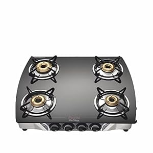 Preethi Blu-Flame Stainless Steel Jumbo Max Glass Top LPG Gas Stove with 4 Burner (Multicolour) (ISI Certified), Standard, GTS 118 Open