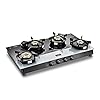 Prestige Svachh Duo GTSD 04 SQ Toughened Glass with Liftable 4 Burners Gas Stove, Black, Manual Ignition