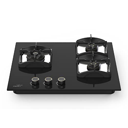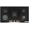 V-Guard VHD 480 ZBS Kitchen Gas Hobtop 4 Burner with Auto Ignition/Triple Ring Brass Burners/Heat Resistant Toughened Black Glass/Dome Cast Iron Pan Support / 1.5V Battery Powered DC Ignition