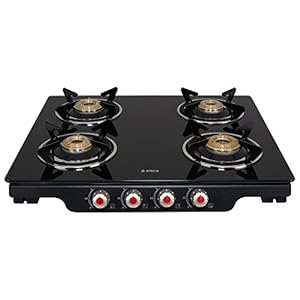 Colour: BlackVidiem Gas Stove G4 192 A AIR (Black with Silver) | 4 Burner Gas Stove | Manual Ignition | 8mm Toughened Glass Top Gas Stove | Safety, Reliability, High Efficiency | ISI Certified | 2 years warranty