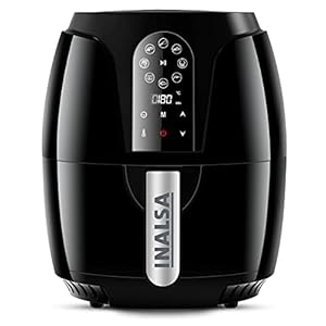 1350W Halogen Heating Tube gives it enough power to do all the jobs efficiently. Crispy french fries, vegetables, chicken, fish and more all at your finger tips with the convenience of easy clean up and no oily mess.INALSA Air Fryer 2.4 L Crispy Fry Digital-1200W with Smart Rapid Air Technology|Digital Display|Preset Menu|Timer Selection And Fully Adjustable Temperature Control|Free Recipe book, 2 Year Warranty